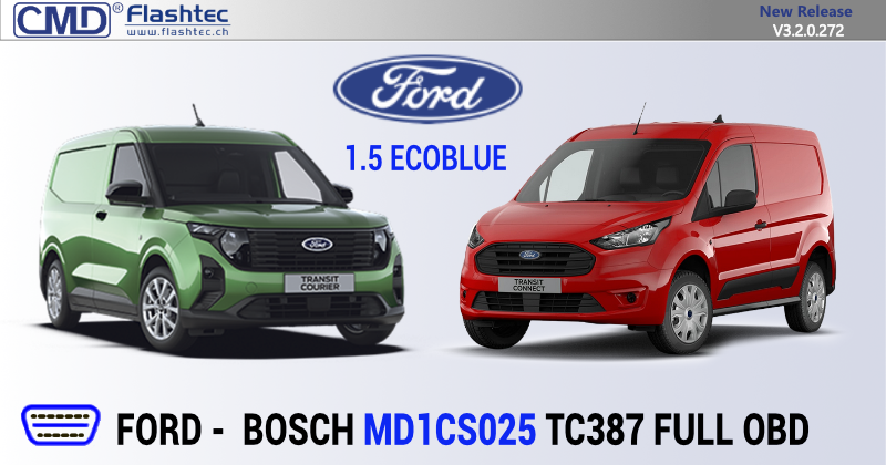Ford Bosch MD1CS005 FULL OBD (1.5 EcoBlue Engine) This new OBD protocol allows you to manage the map and firmware areas of Bosch MD1CS005 ECUs. This solution works directly through the diagnostic port and is only for ECUs with the latest BENCH anti-tuning protections. |