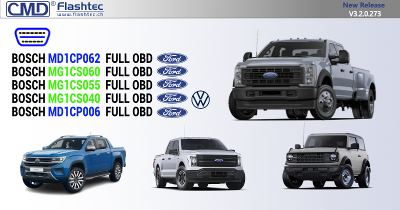 NEWS VER 3.2.0.273 OBD These new OBD protocols allow you to manage the map and firmware areas of Bosch MD1CP006,MD1CP062,MG1CS060,MG1CS055 and MG1CS040 ECUs.